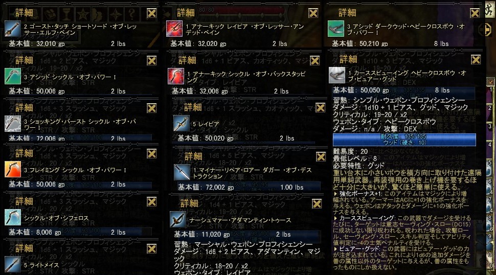 日本語プレイ時のシックル狂ROGのInventory。